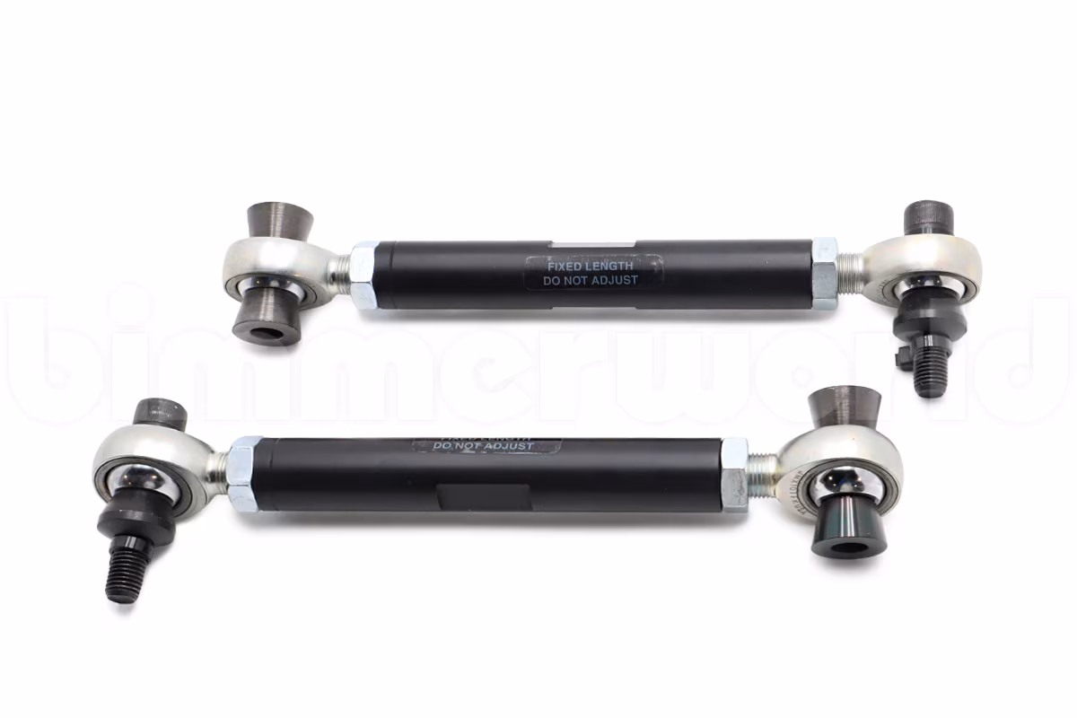 The BimmerWorld E8X/E9X Spherical Rear Guiding Link Set is made to be a fixed-length part, designed specifically for upgrading the sloppy rubber bushings in this stock arm to more precise spherical components. Spherical arms allow your suspension to move freely without binding and with more precision to maintain your desired toe and camber settings even under load.