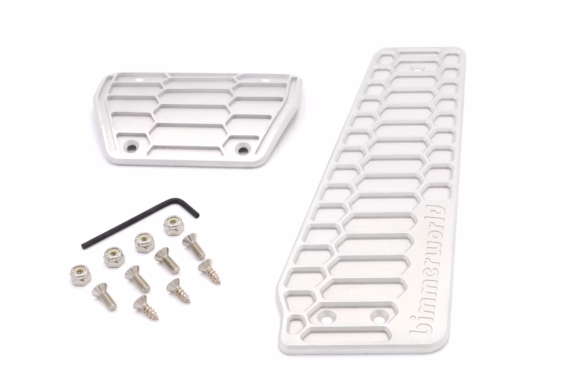 While there's lots of different pedals on the market, it was important that ours really look the best and play off this existing motif. Also, we know many of these cars come with the “M Sport” style pedals from the factory. Those are interesting, but also a little irregular (and some think maybe even weird). Whether you like them or not, we wanted to make sure ours looked better the best factory pedals, and add premium material (versus thin black plastic). While looks are 100% subjective, we think we did pretty good. They're certainly eye grabbing and NOT boring!