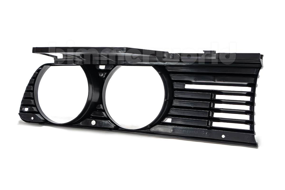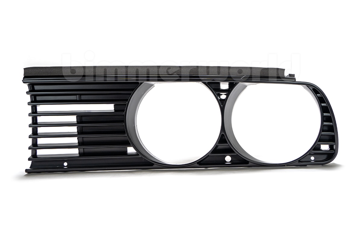 This part is listed by BMW as BMW part number 51131876091 (51-13-1-876-091) and is described as Genuine BMW Grill, Left Side, for European-spec E30 3-Series. The Euro style front plastic grill is a no downside upgrade on the US-spec cars and gives your E30 a decidedly European look, filling the “gap” normally visible above the low beam headlight. This front left Euro spec grille fits all E30 body styles, including E30 M3 and 325e/325i/318i models in Coupe, Convertible, & Sedan configurations.