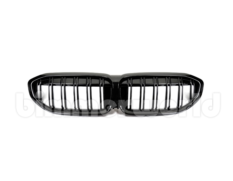 This gloss black double-slat front grille fits 2019-2022 G20 330i and M340i models not equipped with Parking Assistance System Plus (S5DNA). This grille does not accommodate the parking sensor used with the S5DNA optional equipment.