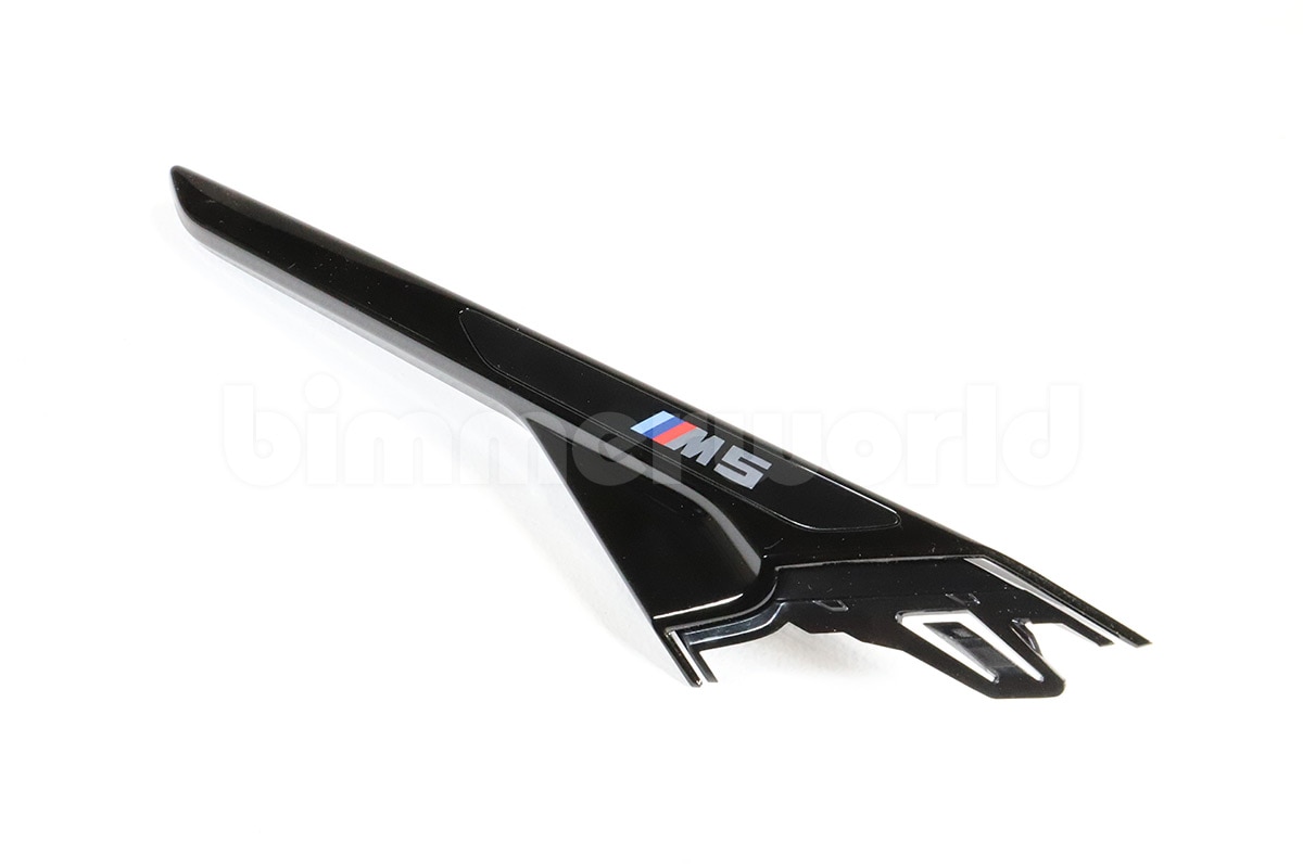 This part is listed by BMW as BMW part number 51138076048 (51 13 8 076 048) and is described as Shadowline Black Right Vent Trim for the F90 M5. This is the Right/Passenger's Side fender trim with the M5 logo (but not the air vent behind it).