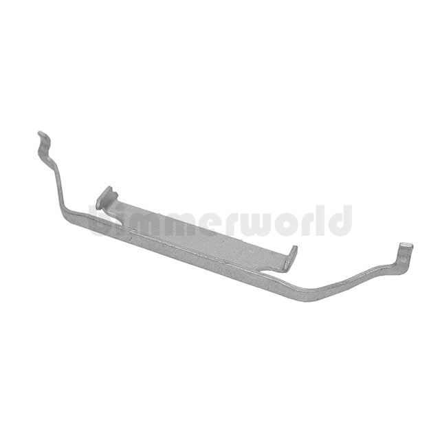 Pad anti-rattle clip to fit on the outside of the rear caliper on E46 330i, E83 X3, and E85/E86 Z4 3.0si. A fresh pad caliper clip is not always required but is sometimes all that is needed to reduce or eliminate annoying pad rattle.