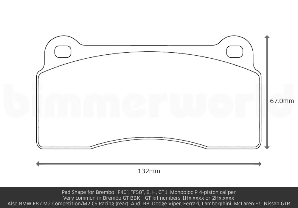 Fitment note: Not for Euro-spec M2 Competition. For US-spec M2 Comp only (Euro-spec / Non-US M2 Competition models the same pads as a F80 M3 or F82 M4 unless the car was optioned with S2NH brakes (silver calipers, 6-piston front, 4-piston rear).