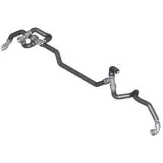 This original BMW coolant hose assembly connects the auxiliary water pumps to the intercooler radiators on F10 M5 (2013-2016) and F06/F12/F13 M6 (2012-2018).