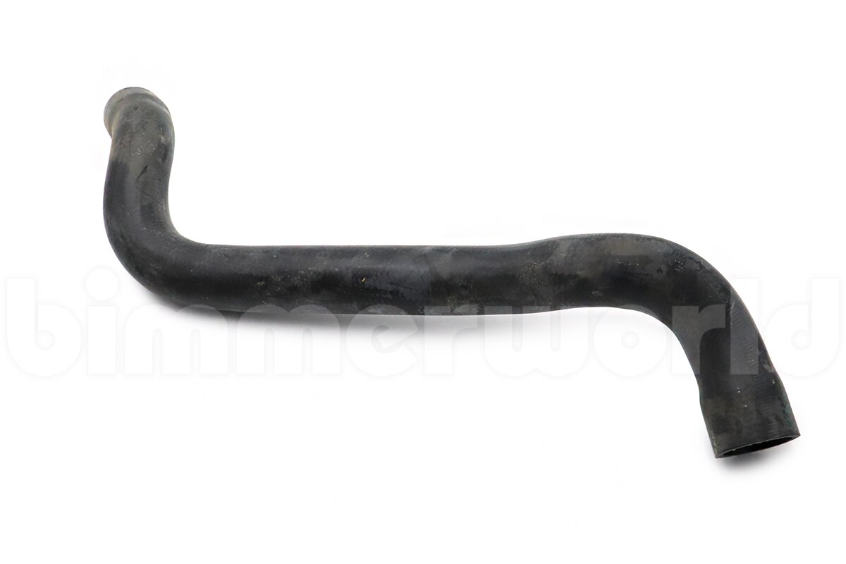 This original BMW coolant hose connects the lower radiator to the thermostat housing on 1982-1988 E28 528e sedan models.