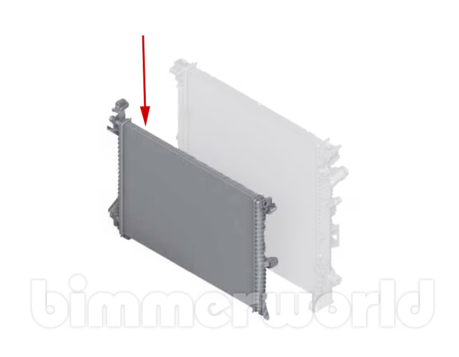 This original BMW auxiliary radiator is sits directly in front of the main radiator on all G05 X5 40i, G06 X6 40i, and G07 X7 40i models