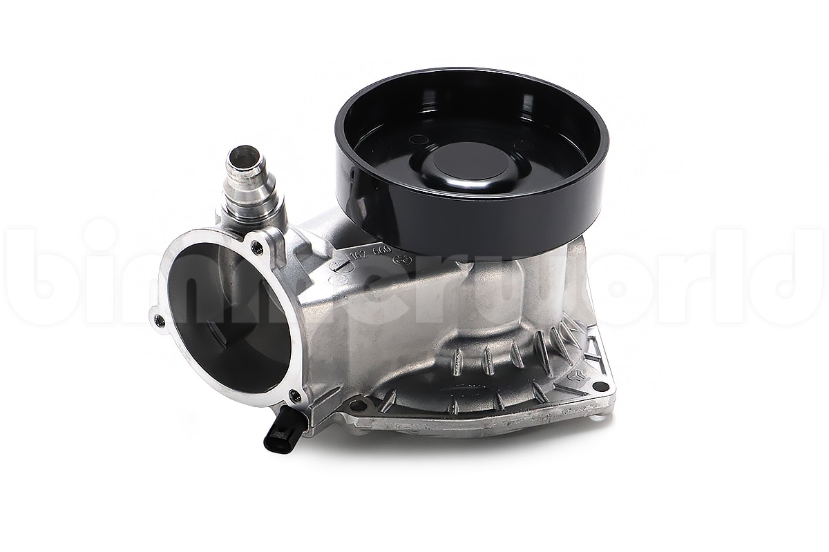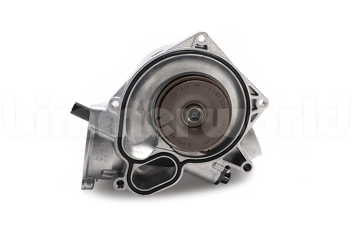 This part is listed by BMW as BMW part number 11518642290 (11 51 8 642 290) and is described as the water pump for the N63TU2 and TU3 V8 engines used in G30 M550i, G12 750i, G15 M850i, G05 X5 50i, G07 X7 50i models. These engines use a split cooling concept that controls engine block and cylinder head temperatures separately. The water pump plays a crucial role in this system. In addition to traditional coolant supply, the water pump includes a new Thermal Actuator that is the key piece of the split cooling system. A new gasket and o-rings are included. The thermostat is sold separately (BMW part #11538685978).