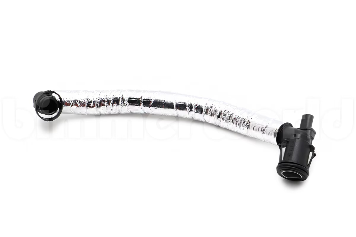 This part is listed by BMW as BMW part number 11157936327 (11 15 7 936 327) and is described as the upper Crankcase Vent (PCV) Pipe for BMW G30 540i, G12 740i, G15 840i, G05 X5, G06 X6, G07 X7 "40i" models with the B58C engine. This is the top PCV hose from the valve cover to the turbo duct. It includes a heating element and insulation to prevent oil sludge in cold climates.