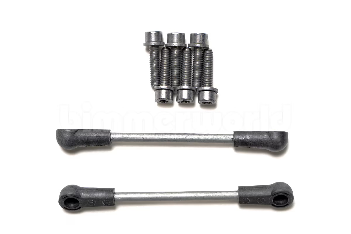 This OEM throttle actuator replacement kit includes a pair of VDO actuators, six genuine BMW mounting screws, and two genuine BMW linkage pull rods for a complete replacement on the S65 V8 engine on E90/E92/E93 M3 Sedan, Coupe, and Convertible (2008, 2009, 2010, 2011, 2012, 2013).