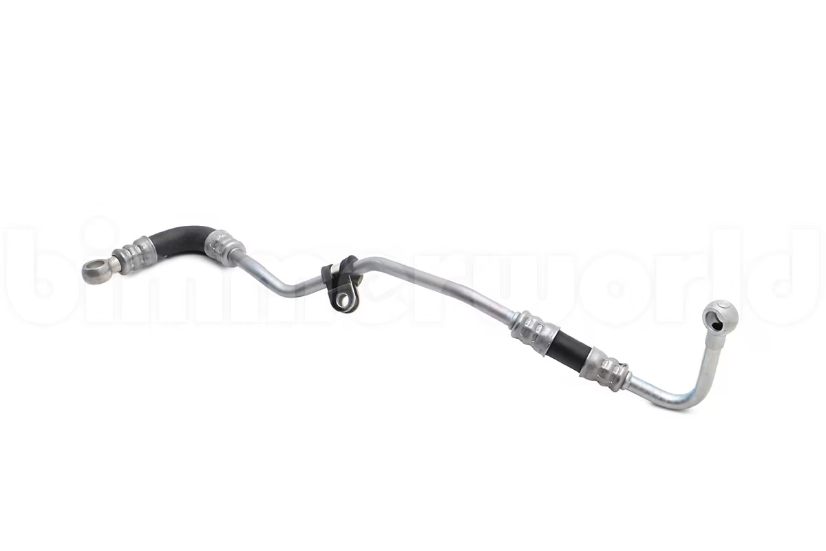 Note: access is VERY restricted on this line and will require removing a lot of other lines and likely both turbos. We strongly suggest buying more than just this piece. See our M57 turbo oil line kit under Related Items below.