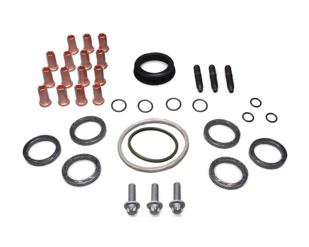 N55 Turbo Installation Kit Includes: 6 x 11657593303, Exhaust Manifold Gasket Ring 15 x 18407502196, Exhaust Manifold Copper Flange Nut 3 x 11127593376, Exhaust Manifold Stud 2 x 11427590576, Oil Supply Line O-Ring 2 x 11427590577, Oil Return Line O-Ring 3 x 11537590575, Coolant Line O-Ring 1 x 18307553601, Turbo to Downpipe Gasket 1 x 13717593172, Turbo Inlet Gasket Ring 1 x 13718596850, Preformed Seal Gasket, Hotside Chargepipe to Intercooler 3 x 11517602123, Water Pump Bolts 1 x 11537584829, Water Pipe-to-Engine Block O-Ring