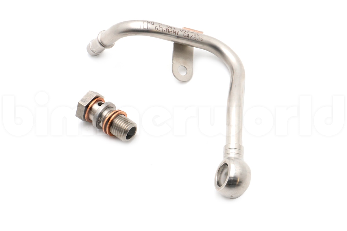 This is a Genuine BMW S63 turbo cooling hose with a two year warranty. Buying a Genuine part will usually be more expensive than an OEM or aftermarket brand but you are assured that it meets BMW's designs for fitment, performance, and longevity. It will also be the very latest design, incorporating any updates or revisions that an aftermarket brand typically will ignore.