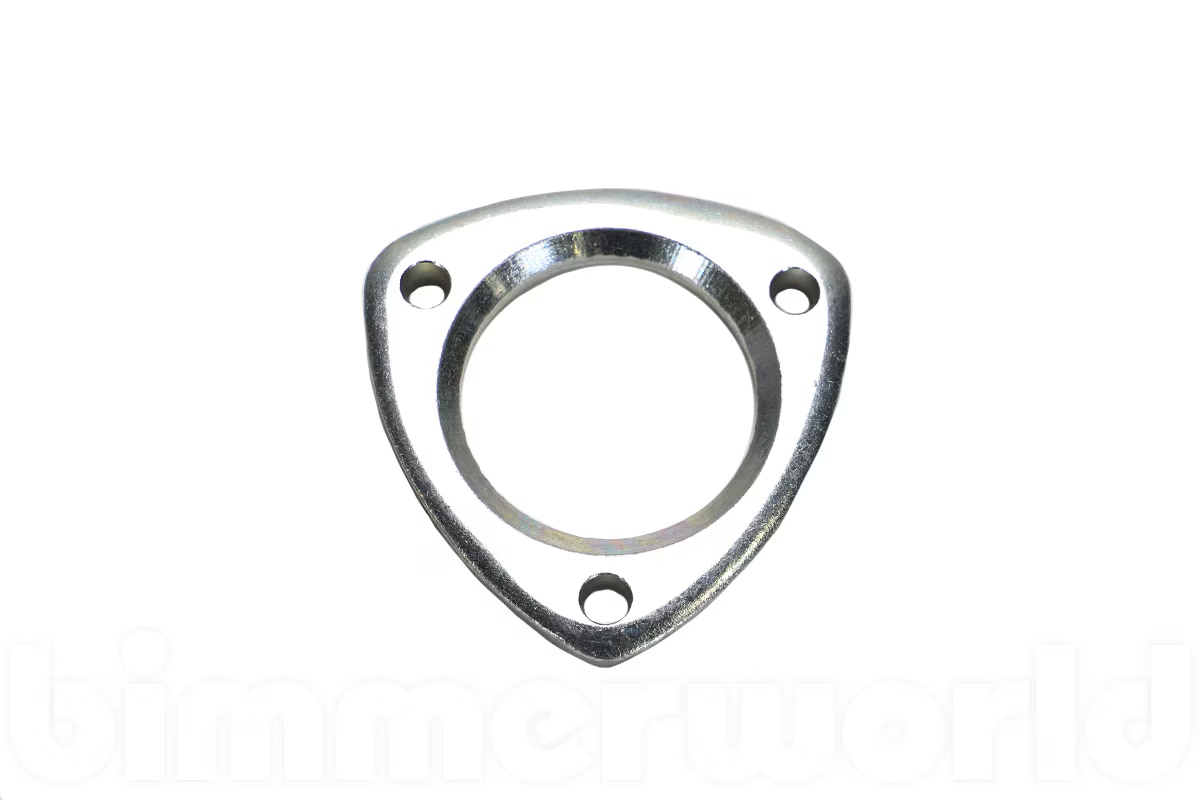 This part is listed by BMW as BMW part number 18111175312 (18 11 1 175 312) and is described as a 3-bolt exhaust flange typically used to convert a US-style exhaust (center resonator) to a Euro-style exhaust (such as Supersprint). Most of the Euro exhaust systems are built using this 3-bolt flange while the US had the 2-bolt. You can either source 2-bolt flanges for your Euro exhaust or use these Euro flanges to install on your US exhaust. See below for related gaskets and hardware.