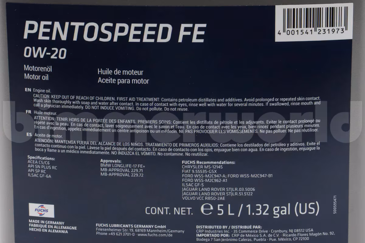 The 0W20 is not just a fuel efficient and low emissions formula. The weight is advantageous for modern vehicles that see city, town, and stoplight driving with frequent Stop/Start activation. The 0W20 is BMW-approved for all B46A, B46D, B48, B58A, B58C, B58D, N20, and N26 engines. This covers most four and six-cylinder gasoline engines (not Motorsport) introduced from 2016-2023. It can also be used as an alternative to the factory fill 0W12 in 2023+ B58N 6-cyl 48V Mild Hybrid and B48P 4-cyl engines.