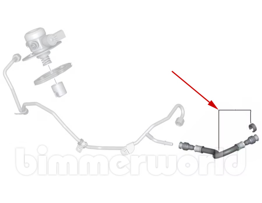 This part is listed by BMW as BMW part number 13537606562 (13-53-7-606-562) and is described as Genuine BMW Fuel Hose for High Pressure Fuel Pumps on N63N & S63N engines.
