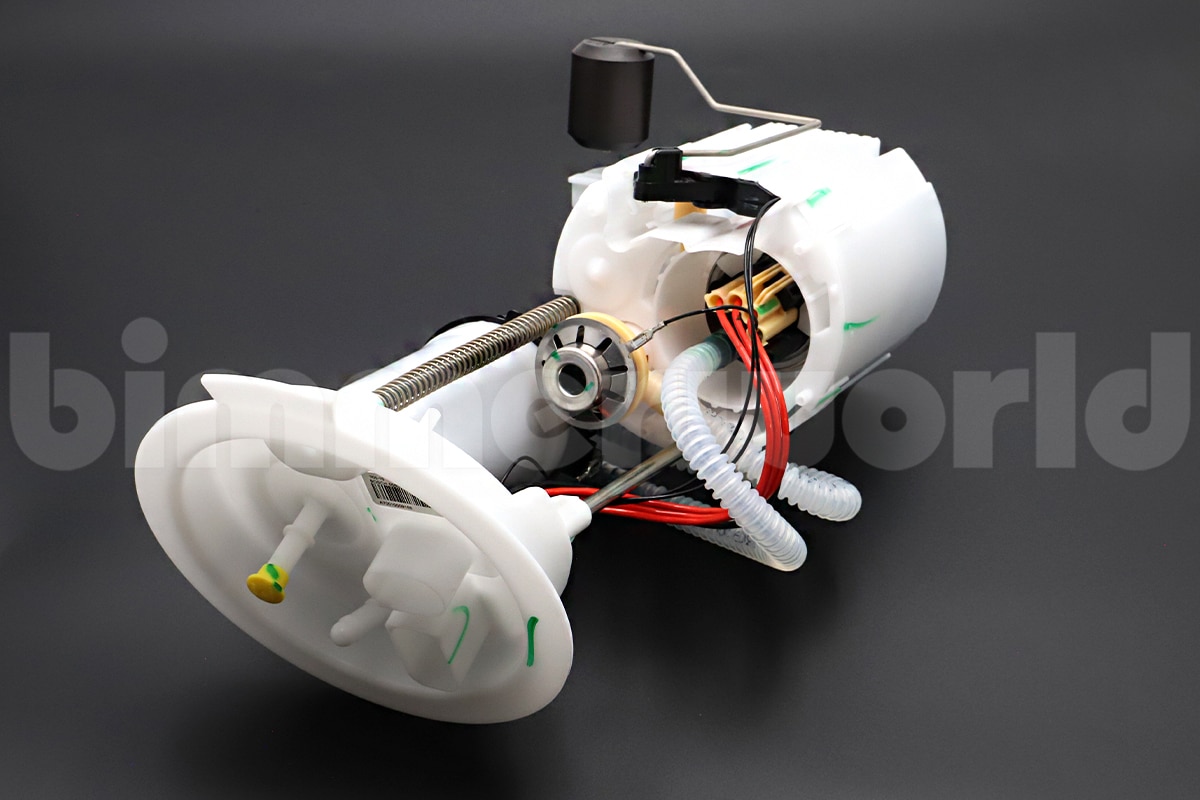 This OEM Bosch low-pressure fuel pump is used inside the fuel tank on F22/F23 230i, M240i (2016-2021), F30/F31 330i, 340i (2016-2018), and F32/F33/F36 430i, 440i (2016-2019). This fuel pump has an integrated fuel level sensor.