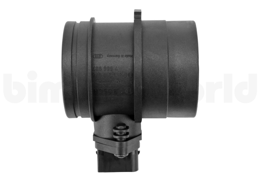 This part is listed by BMW as BMW part number 13627566987 (13 62 7 566 987) and is described as HFM Mass Airflow Sensor for BMW E65/E66 760Li N73. This V12 uses two of these HFMs - they are the same part for the left and right intake. Sold per HFM.