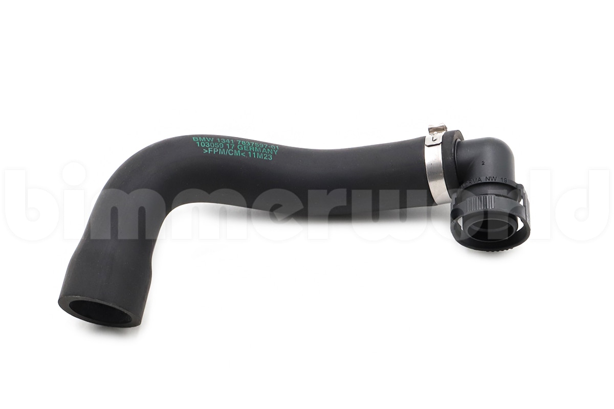 This part is listed by BMW as BMW part number 13417837597 (13 41 7 837 597) and is described as the hose from the idle control valve to underneath the intake manifold (plenum).