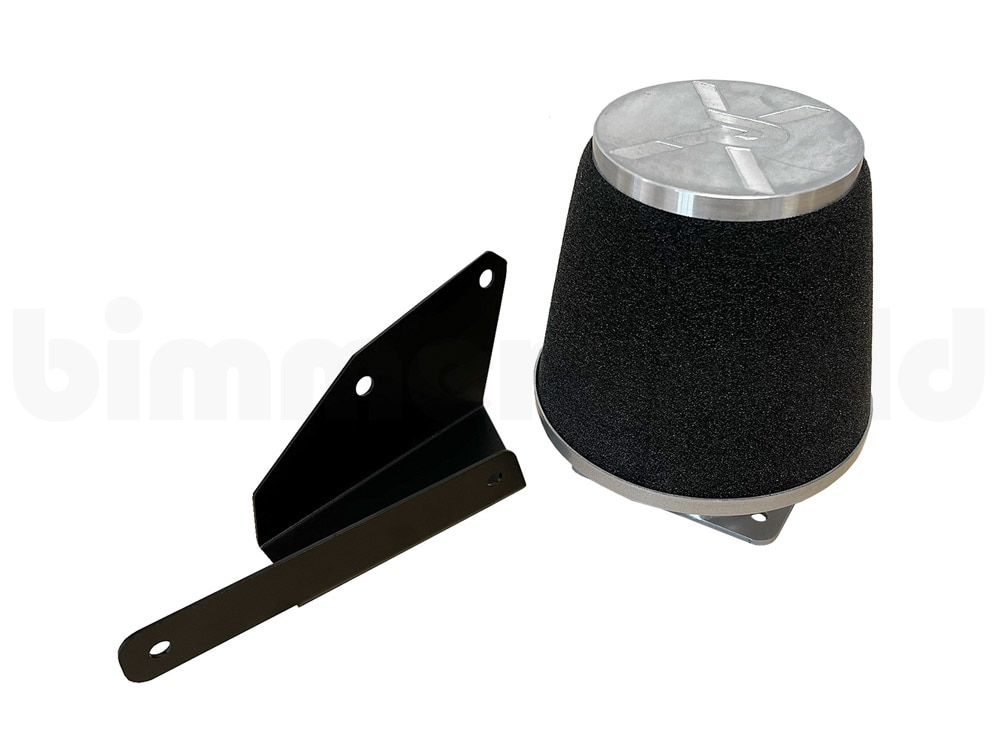 Cone filter kit for the stock AFM on E30 325e, 325i, and 325iX. This uses a high-flow foam conical filter with a E30-specific bracket for an easy cone filter install on E30s that will really wake up the intake sound.