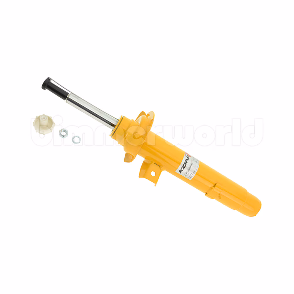 KONI Yellow Sport front strut for the F22 and F30 (without Sport suspension) is designed for sport/lowered springs and features digressive valving combined with two-position adjustable rebound. Digressive valving is stiffer than OEM shocks on slow suspension motions (cornering) but gets softer as shock piston speeds increase (bumpy pavement). This shock is tuned for sporty handling but engineered to maintain a level of ride comfort acceptable to most. The adjustable Sport shock has more control and is tuned for higher performance than the self-adjusting FSD shock.