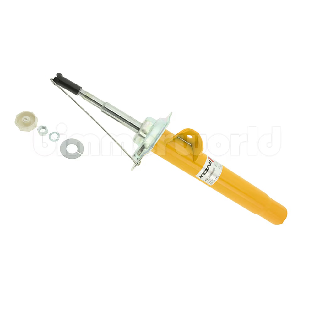 KONI Yellow Sport LEFT front strut for the E46 M3 is designed for sport/lowered springs and features digressive valving combined with two-position adjustable rebound. Digressive valving is stiffer than OEM shocks on slow suspension motions (cornering) but gets softer as shock piston speeds increase (bumpy pavement). This shock is tuned for sporty handling but engineered to maintain a level of ride comfort acceptable to most. The adjustable Sport shock has more control and is tuned for higher performance than the self-adjusting FSD shock.
