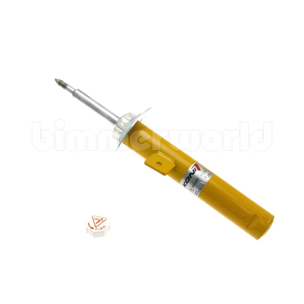 KONI Yellow Sport LEFT front strut for the E46 325xi/330xi is designed for sport/lowered springs and features digressive valving combined with two-position adjustable rebound. Digressive valving is stiffer than OEM shocks on slow suspension motions (cornering) but gets softer as shock piston speeds increase (bumpy pavement). This shock is tuned for sporty handling but engineered to maintain a level of ride comfort acceptable to most. The adjustable Sport shock has more control and is tuned for higher performance than the self-adjusting FSD shock.