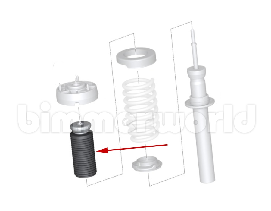 This part is listed by BMW as BMW part number 31336865132 (31-33-6-865-132) and is described as Genuine BMW Front Dust Boot / Bump Stop (Compression Absorber) for front strut on F15 X5 35d xDrive, 35i xDrive, 50i xDrive (2014, 2015, 2016, 2017, 2018).