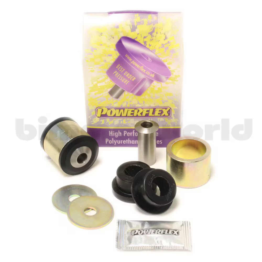 Powerflex urethane bushings replace the stock outer rubber bushings in the rear E82 and E90/E91/E92/E93 upper Guide Link or Wishbone. The stock rubber bushings wear over time and stiffer urethane bushings last longer and have much less deflection than any rubber bushing. This results in less alignment change even when driven hard and a more planted and secure feeling. This bushing replaces the outer bushing on the upper Guide Rod or Wishbone. Bushings are sold as a pair, enough to fit 1 arm on each side. Order 2 pairs for all 4 Guide Rods and Wishbones.