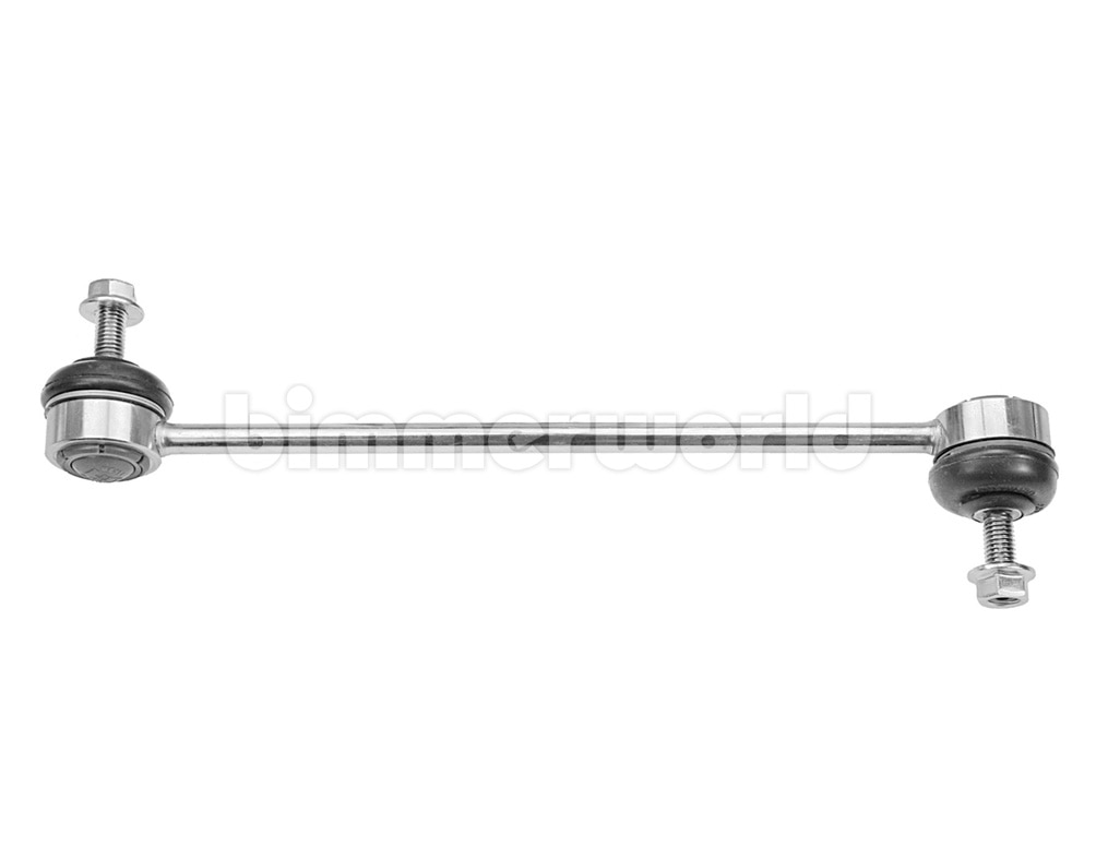 The front E39 540i/M5 sway bar link connects the sway bar (anti roll bar) to the rest of the suspension. This link is for the front sway bar (left or right) but sold individually. As the suspension and the sway bar go through their motions the link rotates and twists. Stock links suffer from high-friction materials and a small surface area that wears quickly. On lowered cars the ball joints are often out of position, or at an extreme articulation, which puts greater strain on the ball joint and causes faster wear. If you hear clunking from the front suspension, especially over bumps and potholes, the sway bar links should be evaluated.