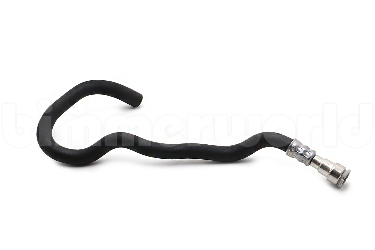 BMW has two hoses they call a Return Line - this is the hose running from the power steering cooler to the reservoir. It returns fluid back to the reservoir. Like the Inlet/Supply Hose it has non-reusable crimped hose clamps where the hose meets the reservoir. Leaks are very common here as the clamps loosen and the rubber hose swells.