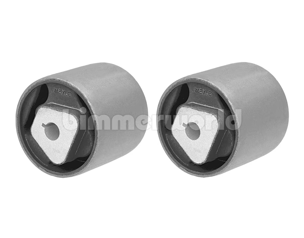 These Meyle HD upper control arm bushings are listed for a large group of E82 1-series, E9X 3-series, E60 5-series, E63 6-series, and E65 7-series models. The Meyle HD bushing is a stiffer rubber compound than the original bushing. This helps improve steering feel and feedback but without hurting ride quality. The stiffer bushing allows less deflection of the control arm, which makes the steering feel more precise.
