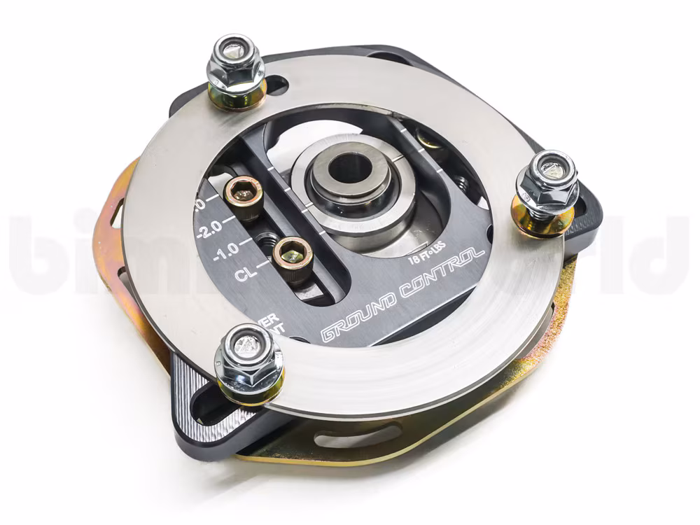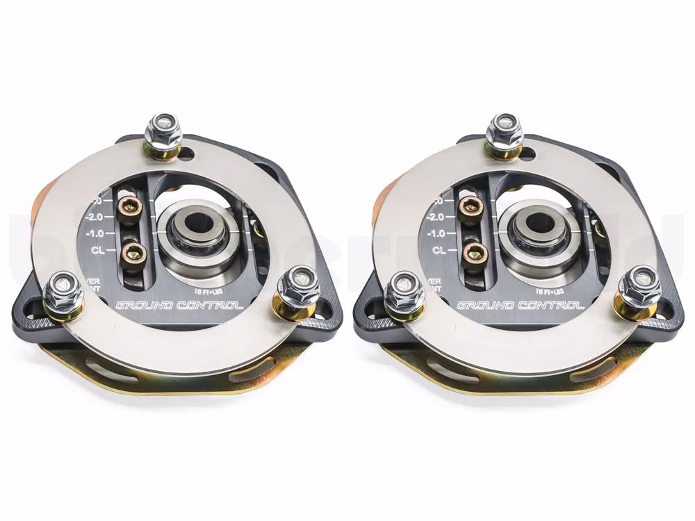 Ground Control has been engineering suspension mounts for competition use since 1980. Their camber plates are based on this rich history of custom suspensions for all types of driving - street, track, and mixed use. Each camber plate is a ground-up design for its intended use, not a compromise. Ground Control-branded parts have a limited lifetime warranty (bearings excluded). Bearings have a 1 year warranty.