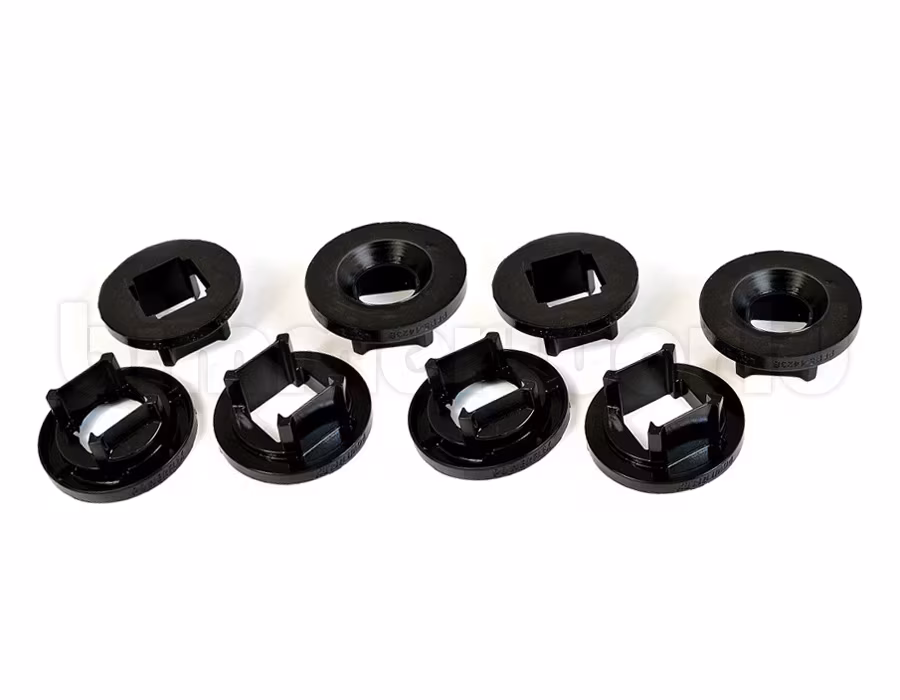 These inserts are specifically designed to work with BMW factory subframe bushing part numbers 33316784940 (33-31-6-784-940) and 33316774556 (33-31-6-774-556), and are guaranteed to fit into the original BMW subframe bushings. If your car has aftermarket subframe bushings, these inserts will most likely not work, as the inserts are molded to match the factory voids perfectly.