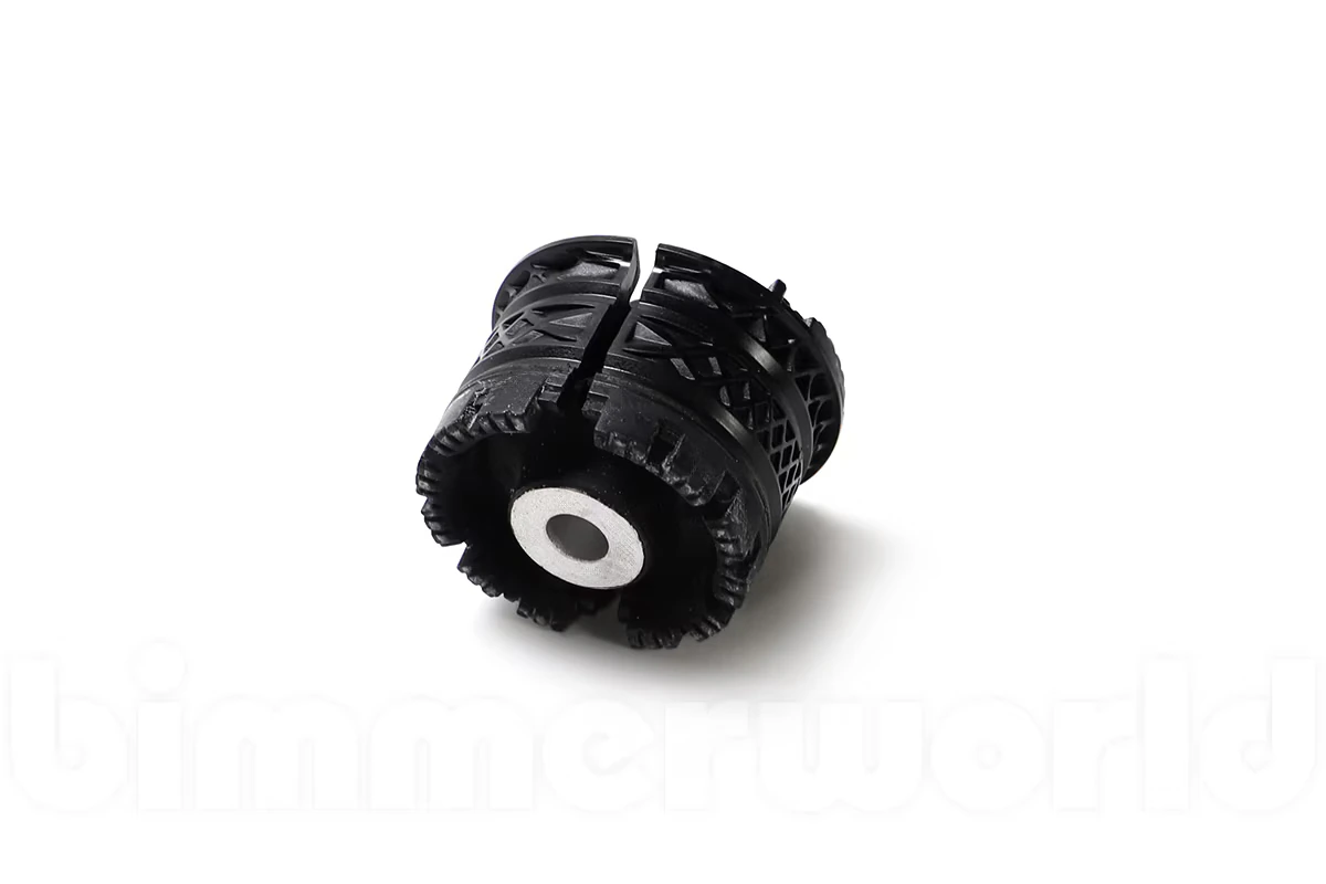 This part is listed by BMW as BMW part number 33326864237 (33 32 6 864 237) and is described as the rear rubber trailing arm bushing (mounting) used on F48 X1 and F39 X2 models, including xDrive cars. The rear trailing arm bushing (RTAB) mounts the trailing arm to the body of the car. When worn, the alignment in the rear suspension (toe) will go unchecked. This leads to a mushy or wandering feeling from the rear of the car, especially when cornering. To restore the original ride and handling, new bushings should be installed at the first sign of wear.