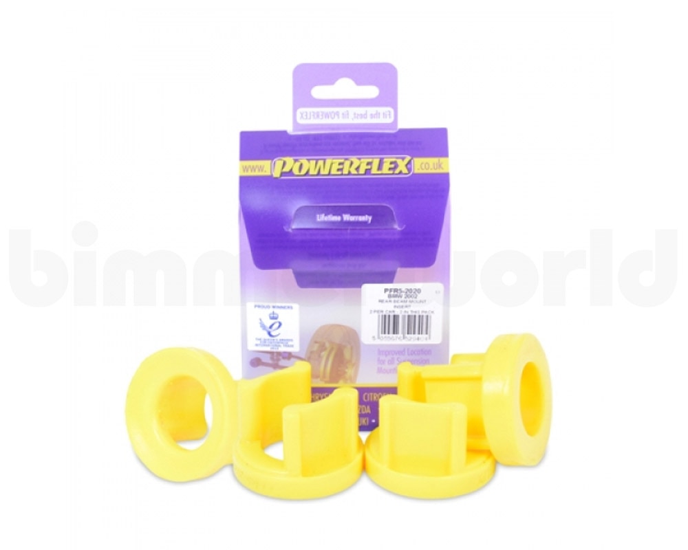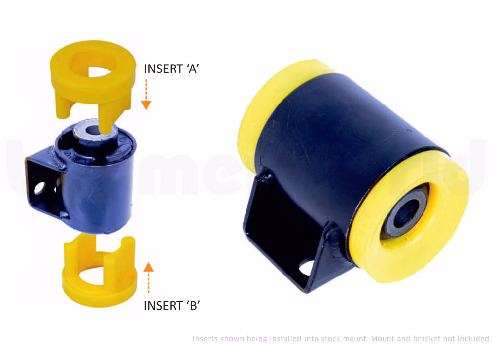 These performance urethane pieces are installed into a stock 2002 rear subframe mounts to reduce bushing deflection and movement. These inserts reduce bushing movement to improve performance without having to change out the complete bushing.