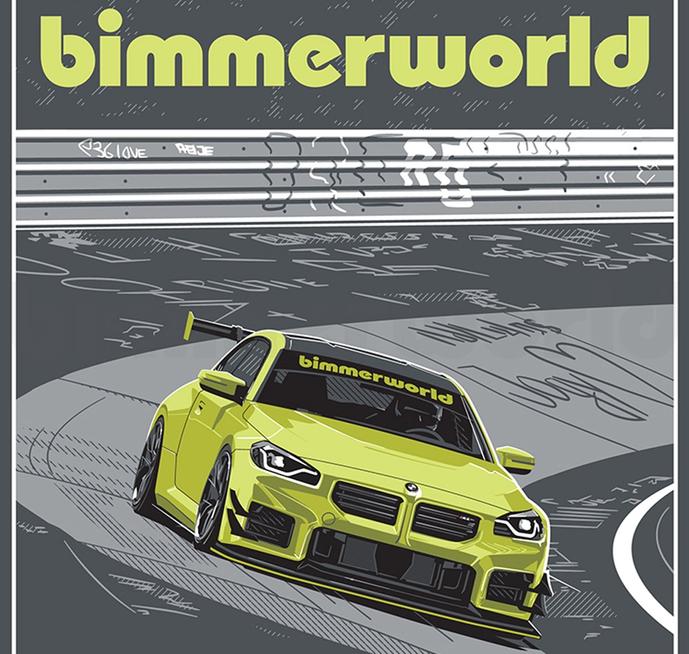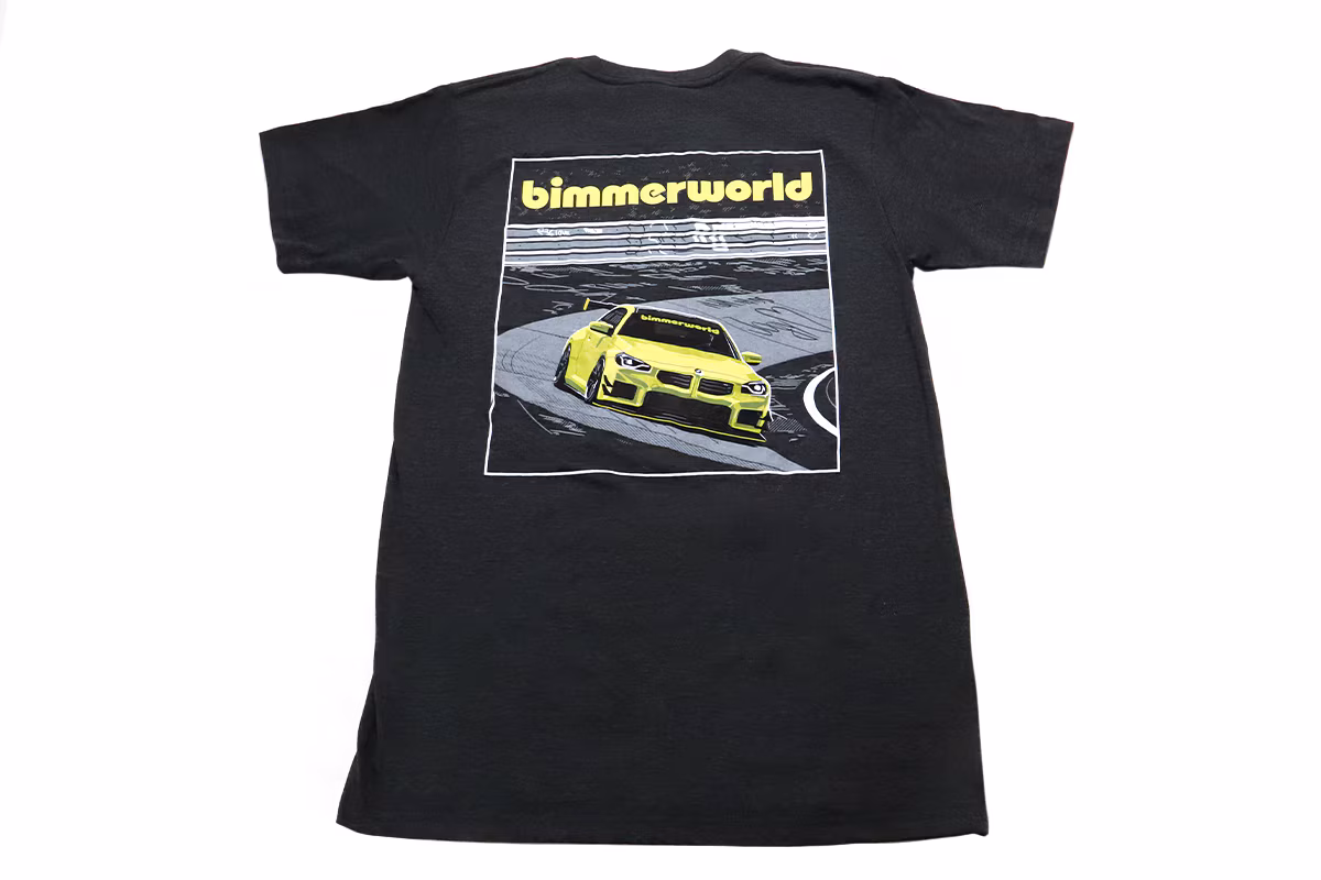 Celebrate BMW and motorsports with our M2 short-sleeve t-shirt. This is a premium tee - not the typical cheap swag shirt - with a rendering of the BimmerWorld G87 M2 in the famous carousel at the Nurburgring. Our M2 is shown in “CS-Advanced” spec with splitters, rear wing, half-cage, and coilover suspension. The Ring is its natural element and you'll likely find it at tracks across America.